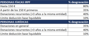 Todos los donativos de hasta 150 € tendrán una desgravación del 80 %. Es una forma sencilla y ventajosa de apoyar la labor del Colegio ya que ése recibirá el total de los donativos.