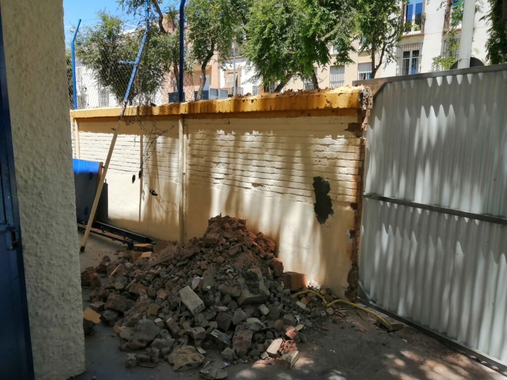 El pasado día 15 de junio comenzaron los trabajos de obra y reforma de los edificios de calle Campamento número 2 donde se ubica la Secundaria y la Formación Profesional. Con las mismas se pretende mejorar la accesibilidad y la reordenación y aprovechamiento de espacios. Se trata de una actuación integral en los dos edificios de dicha parcela que se prolongarán durante todo el verano esperando que a partir del mes de septiembre podamos contar con unos edificios totalmente renovados que nos permitan mejorar la calidad de los servicios y poder seguir creciendo en un futuro próximo.