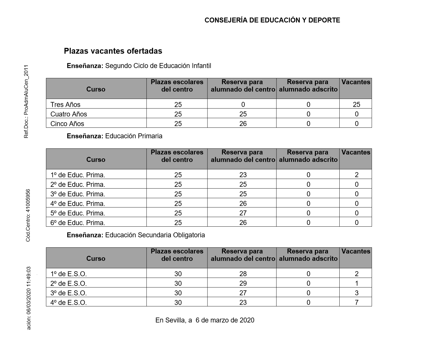 Oferta Plazas Vacantes